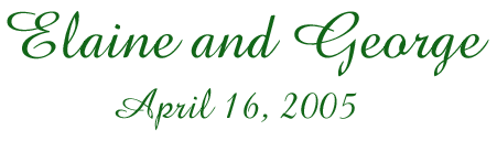 ![]() ![]() Welcome to our global ever changing wedding information booth. We, and our parents, are happy to announce that after eight years of dating, four years of living together, and a year of engagement, it is time to celebrate with our dear friends and family. And it is time to party. We hope you can join us at the Second Unitarian Church at 656 West Barry in Chicago, Illinois at five o'clock in the evening on Saturday, the sixteenth of April, 2005. Please contact us with any questions or concerns or dance music requests. PUT YOUR DANCE REQUESTS IN EARLY! |
